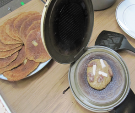 Dan kunt u even kijken hoe wij dat doen, hoe het beslag is, hoe je het gaat bakken, wat er allemaal in komt.